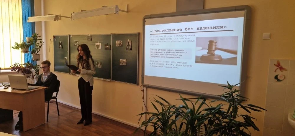 В этот день мы не просто вспоминаем о тех трагических днях, мы объединяемся в борьбе с любыми современными проявлениями нацизма и геноцида. Эта дата напоминает нам об одной из самых важных страниц в истории нашей страны. О Великой Отечественной войне, которую нельзя забывать, мы обязаны сохранить историческую память об этих трагических событиях в жизни нашего народа .. Закончили урок минутой молчания...