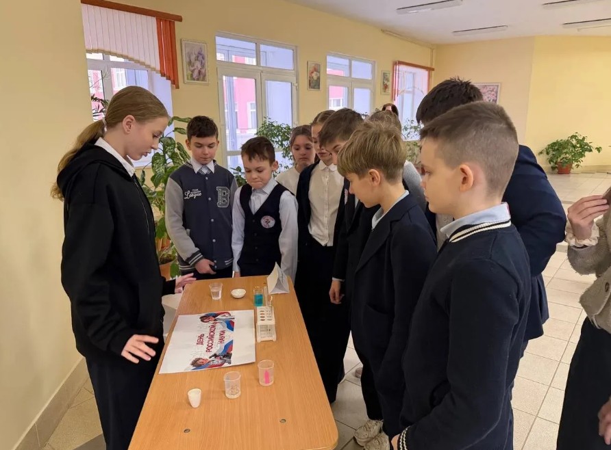 Старшеклассники показали несколько экспериментов, наглядно объясняя основные законы химии. Например, демонстрировалась реакция замещения, окислительно-восстановительная реакция с изменением цвета и выпадением осадка. Эти опыты не только вызвали интерес у школьников, но и помогли понять, насколько химия важна и применима в повседневной жизни и науке.