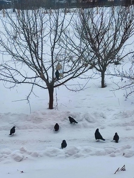 Готовые ЭКО-кормушки ребята во время прогулки развесили на территории школы.Птицы прилетели сразу....