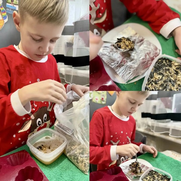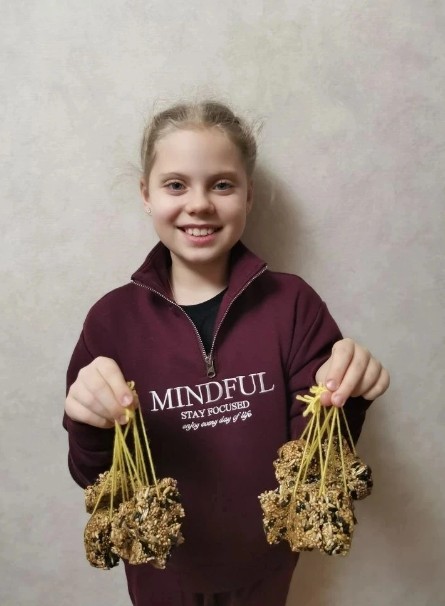 Ученики 3 Б класса вместе с родителями и классным руководителем Крутиковой Е.А.. сделали экологические кормушки, используя максимально полезный корм для пернатых.